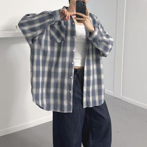 [신상오픈런]체크남방 박스셔츠 얇은긴팔 봄여름 여자 찰랑 힙커버 (31711361)