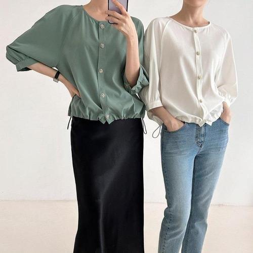 [신상오픈런]가오리핏 칠부남방 라운드넥 밑단조절 스트링 봄셔츠 (30121524)