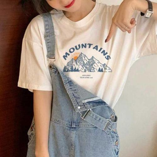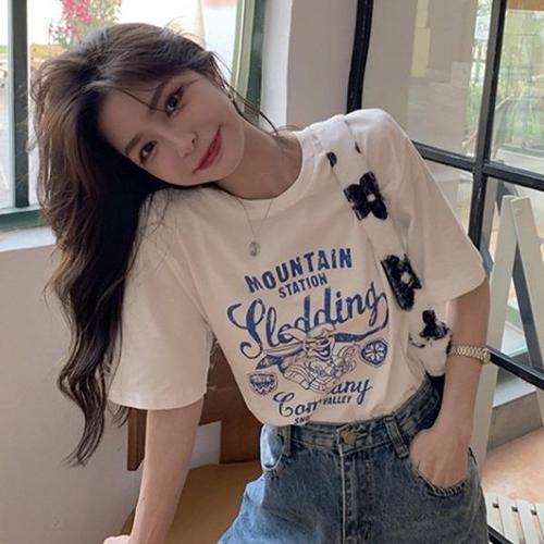 [셀러허브_여성트랜드패션]티셔츠 박스핏 여행 라운드 반팔 프린팅 여름 룩 엠티
