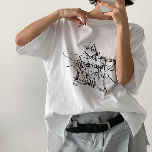 [신상오픈런]별모양 레터링 오버핏 스트릿 박스반팔티 순면티셔츠 (30416984)