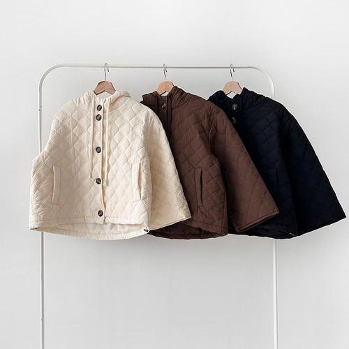 Titikong 여성 겨울 패딩 패션 후드집업 아가일 오버핏 누빔 패딩점퍼 두꺼운 볼륨감 데일리