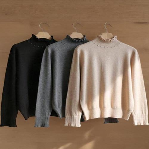 [신상오픈런]여성 심플한 컬러 진주 포근한 반목 긴팔 니트 (42613715)