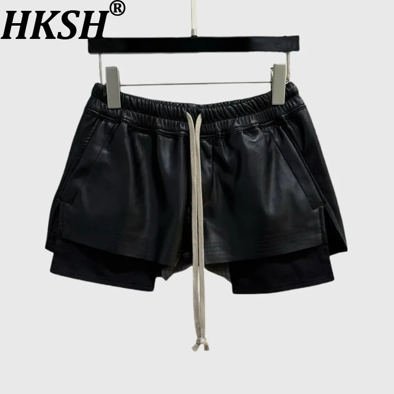 HKSH 여름 새 여성 다크 스타일 반바지 PU 가죽 Drawstring 탄성 허리 패션 펑크 streetwear 유행 세련된 핫 바지 HK9436