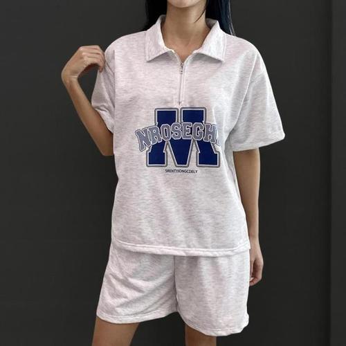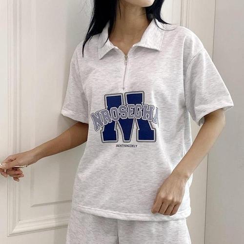 [신상오픈런]여성 스트리트 스타일 반집업 카라 반팔 티셔츠와 반바지 세트 (36230801)