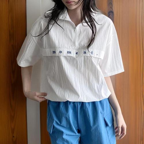 [신상오픈런]여성 반팔 아노락 반집업 캐주얼 레터링 맨투맨 (32966122)