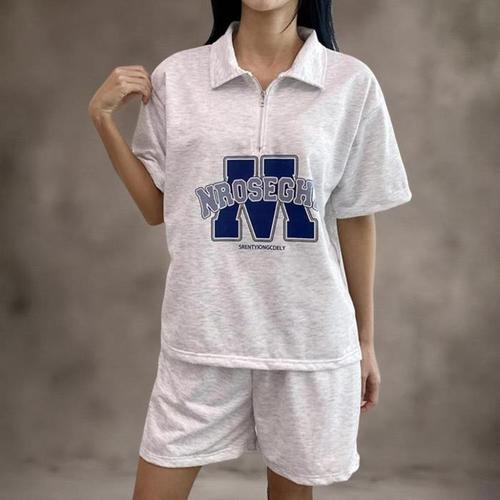 [신상오픈런]여성 스트리트 반집업 카라넥 반팔 티셔츠와 반바지 세트 (35835426)