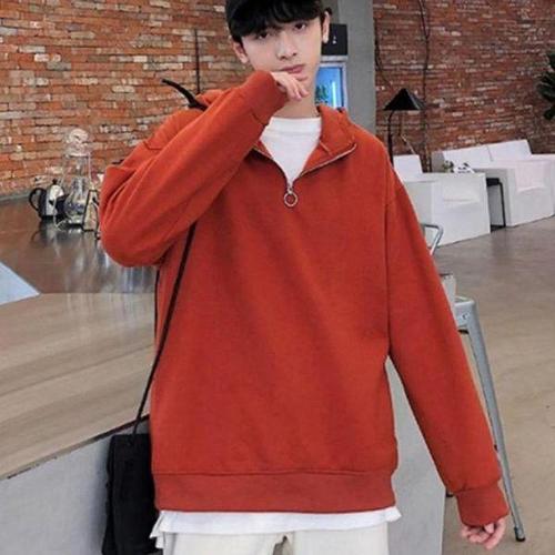남성 데일리 반집업 후드 골지 니트 긴팔티 기본핏 루즈핏 캐주얼 무지 도툼 스웨터