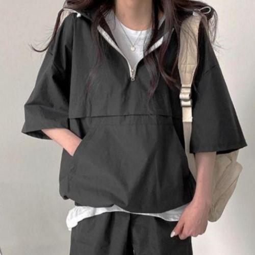 [에이치플러스몰]아노락 후드 반집업 밴딩 반바지 세트 트레이닝복