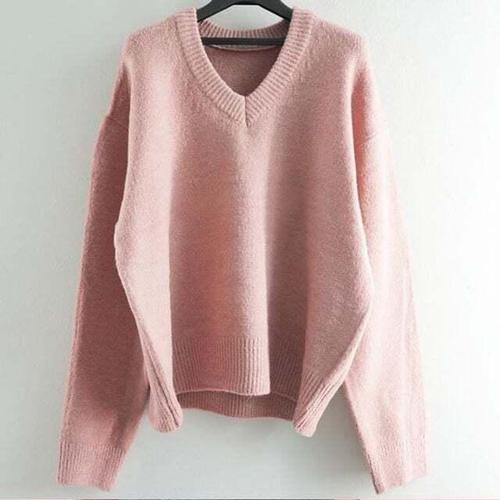[셀럽하우스]여성 YVQC8038 브이넥 루즈 오버 핏 반짝이 펄 니트 티 핑크