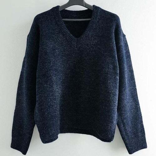 [셀럽하우스]여성 FBWW4788 브이넥 루즈 오버 핏 반짝이 펄 니트 티 네이비