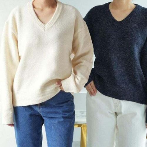 [셀럽하우스]여성 CTFC4336 루즈 데일리 브이넥 오버 보온 핏 반짝이 펄 니