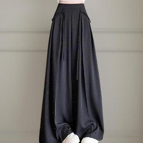 [신상오픈런]여성 반짝이 와이드 허리 스트랩 롱 핏 팬츠 (38284291)