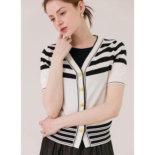 [막스까르띠지오]클래식 스트라이프 반팔 니트 가디건