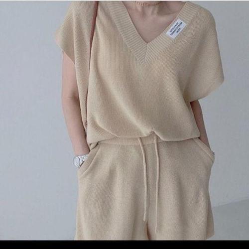 [에이치플러스몰]반팔니트상하세트 여성니트반팔바지세트 캐주얼 니트