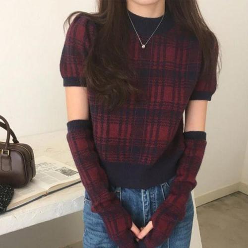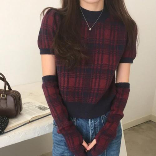 [옷자락] 여성 클래식 배색 핸드뭐머 반팔 니트 세트