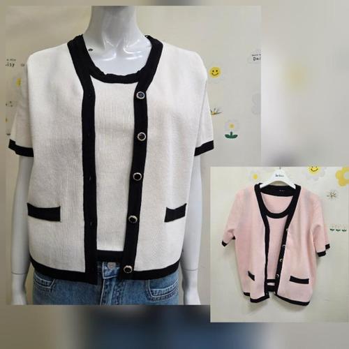 [옷자락]여성 클래식 배색 핸드뭐머 반팔 니트 세트