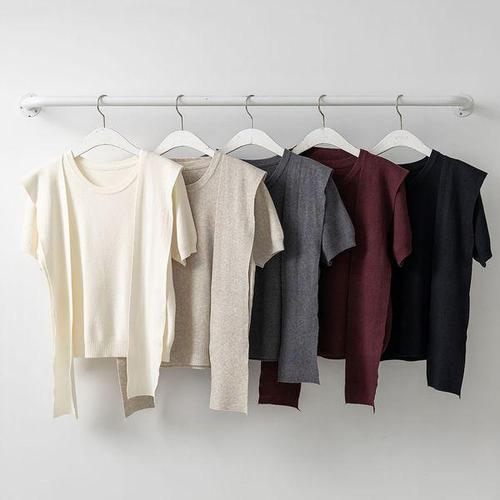 [다잇템]여자 FW 골지 레이어드숄 숄더 반팔니트 세트