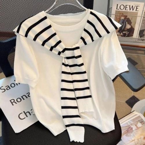 [에이치플러스몰]썸머 스트라이프 숄 반팔니트 세트