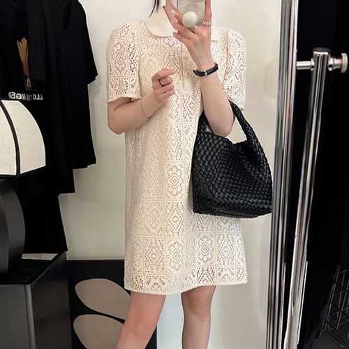 [신상오픈런]여성 휴양지용 그물 패턴 반팔 롱 니트 커버업 (32330893)