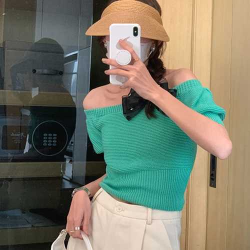 슈팅스타 / 오프숄더 크롭 반팔 니트 탑 티셔츠 126036