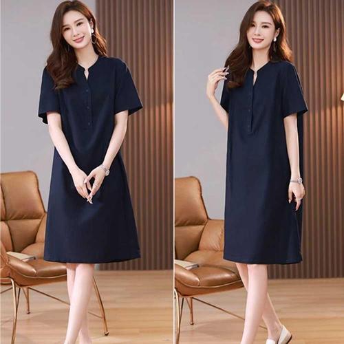브이넥 원피스 봄 여름 빅사이즈 부드러운 면 반팔 롱 원피스 여름 2color