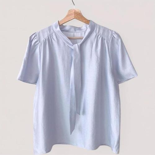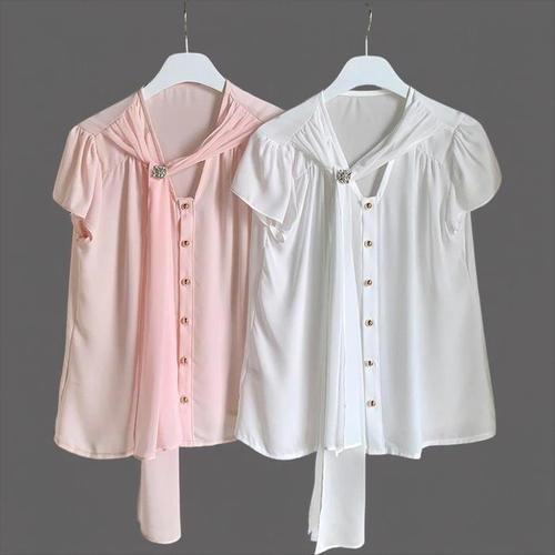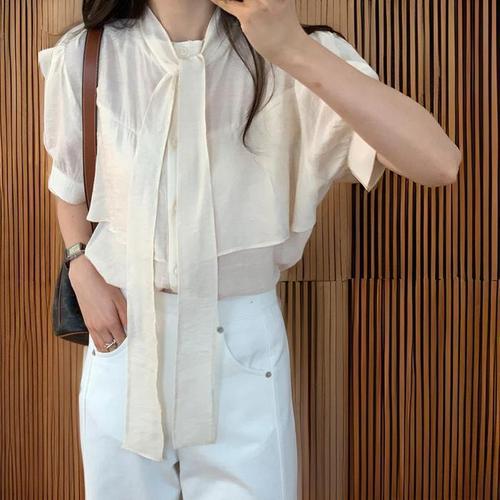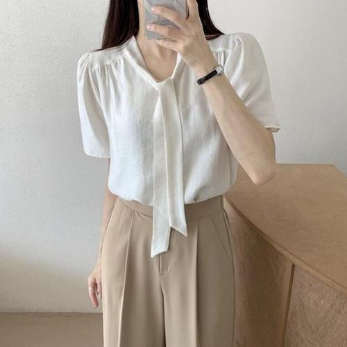 [신상오픈런]여성 사무실 패션 타이넥 쉬폰 반팔 블라우스 (41031378)
