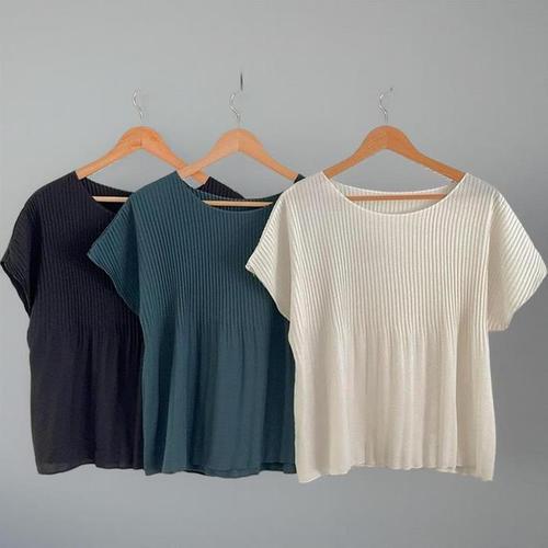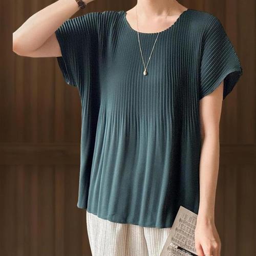 [신상오픈런]여성 여름 라운드넥 플리츠 반팔 티셔츠 블라우스 (39114265)