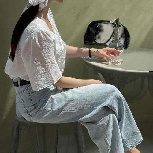 티데일리 살랑 링클 반팔 셔츠 여성용 여름 카라 남방 블라우스
