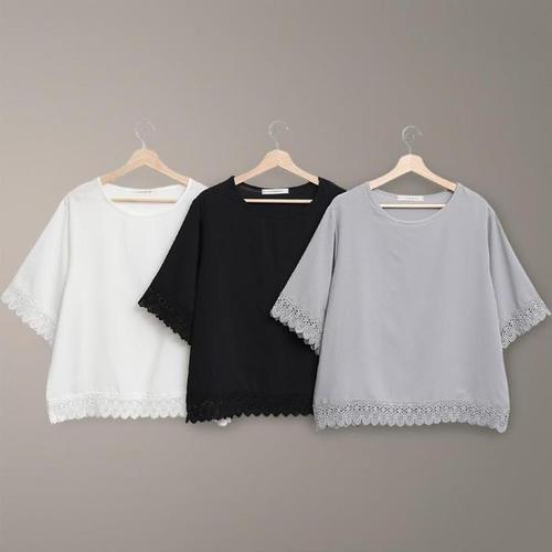 [신상오픈런]여성 레이스 반팔 꽃무늬 빅사이즈 무채색 블라우스 (38767888)