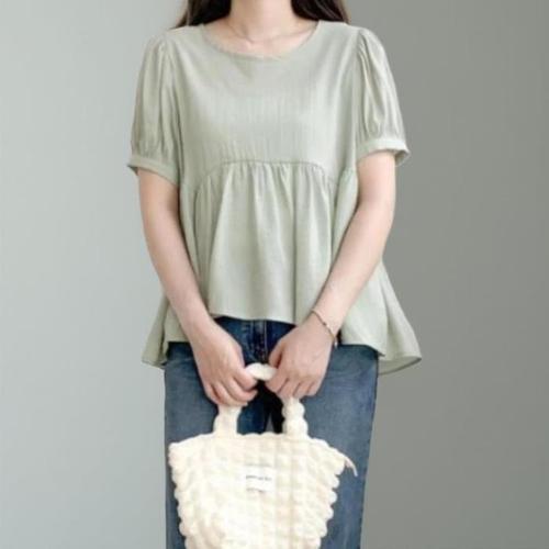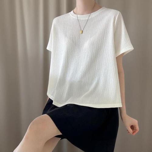 [신상오픈런]여성 반팔 티셔츠 등원 스타일 라운드넥 블라우스 (38169722)