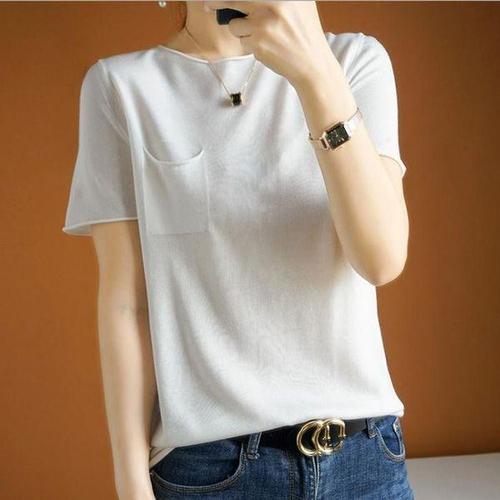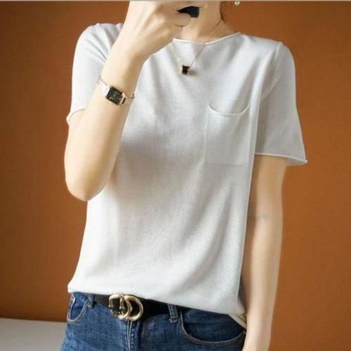 [에이치플러스몰]라이오셀 베이직 반팔티 티블라우스 니트티 올데이 여