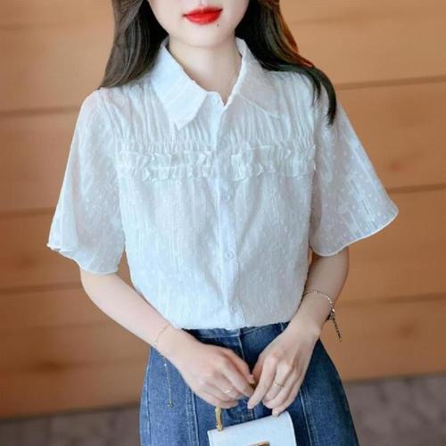 [신상오픈런]여성 레이스 퍼프 소매 대형 라운드 반팔 블라우스 (39101563)