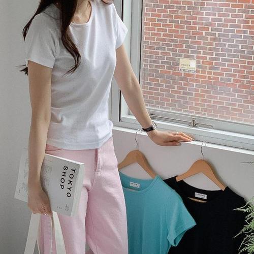 슈팅스타 / 심플 베이직 슬림 반팔티셔츠 320120
