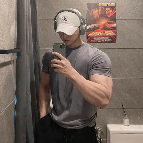 남성 머슬핏 무지 반팔티 1P 여름 라운드 일상 티셔츠 WE3691D