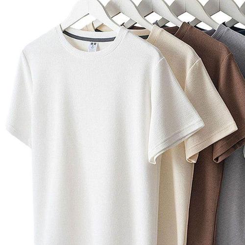 [에이치플러스몰]남자 여름 무지 반팔티 기본핏 두꺼운 와플 쿨링 반팔 티셔츠 흰티 골프티