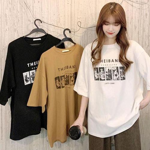 [에이치플러스몰]프린팅 면스판 반팔티 빌리하 오버핏 여성티 박