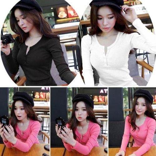 [에이치플러스몰]단추긴팔티 라인 오버핏 라운드티 반팔티 페미닌