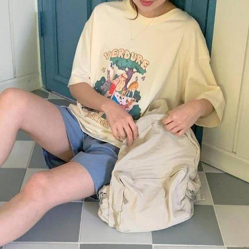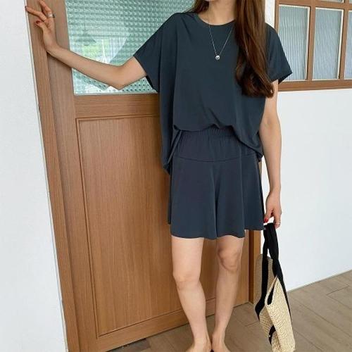 [신상오픈런]|KHD27D2|여성 찰랑핏 루즈핏 반팔티 밴딩 반바지 세트_23563246_597559