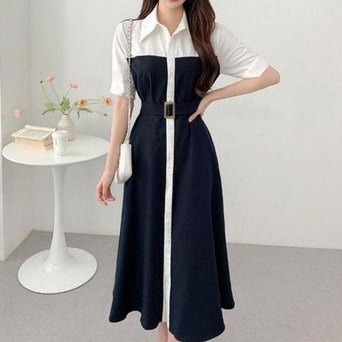 [셀러허브_여성트랜드패션]여성 3컬러 여성원피스 여름 여름원피스 단정한 반팔 벨트 롱원피스 셔츠형