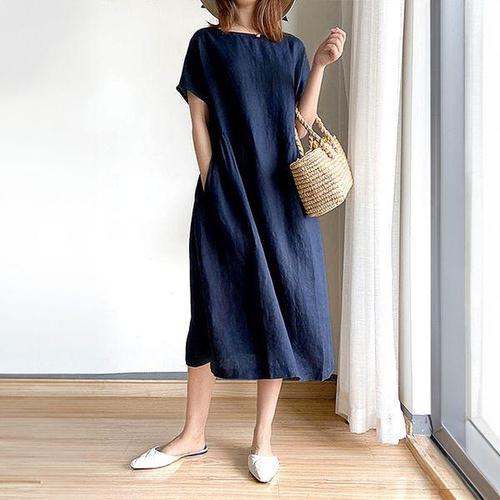 POMTOR 여성 데일리룩 여름 무지 브이넥 면마 원피스