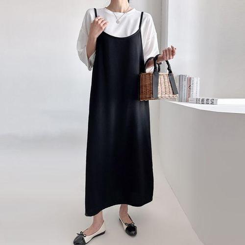 [유야]99까지 초경량 무지 레이어드 반팔 뷔스티에 롱 원피스 임부복 데일리 -OP0481H- 빅사이즈 루즈핏 ..