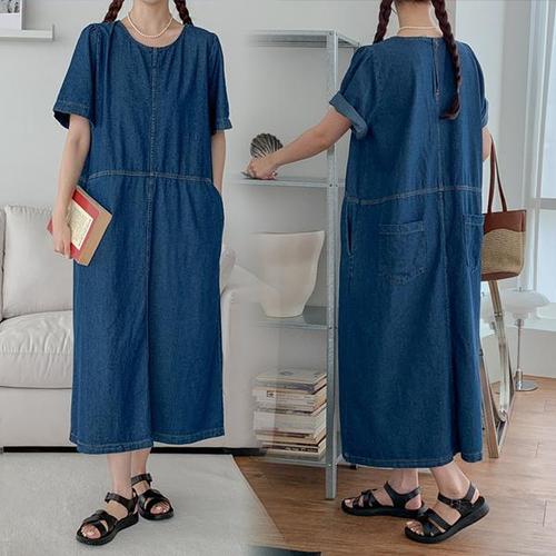 [아이우먼]데일리데님롱반팔원피스 RDS518M508 빅사이즈