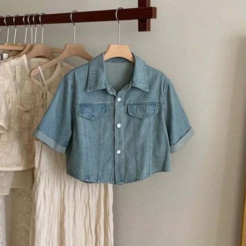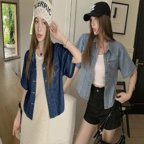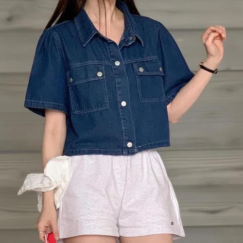 [셀럽하우스]여성 GMRS3189 데님 반팔 셔츠 남방 세미크롭 짧은 청자켓