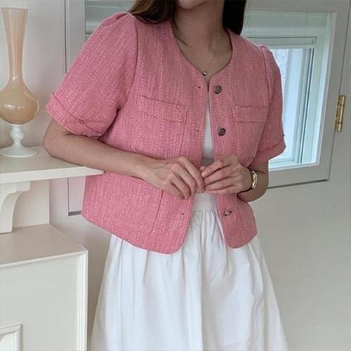 [다잇템][다잇템] 여자 반소매 금장버튼 트위드 여성스러운 자켓_13593025_588872