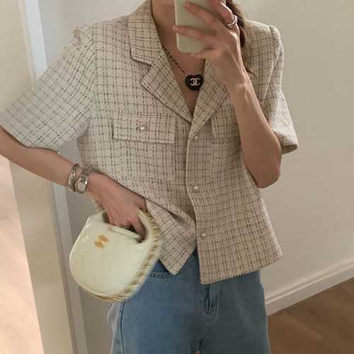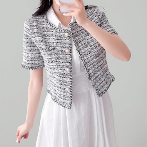 화사한 여름 재킷 고급스러운 트위드 소재 여성 반팔아우터