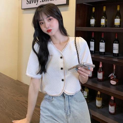 [신상오픈런]반팔가디건 브이넥 크롭 슬렌더룩 키작녀 트위드자켓 (30492206)