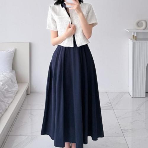 [신상오픈런]여성 반팔 트위드 자켓 노카라 진주 버튼 오피스 스타일 (37001082)