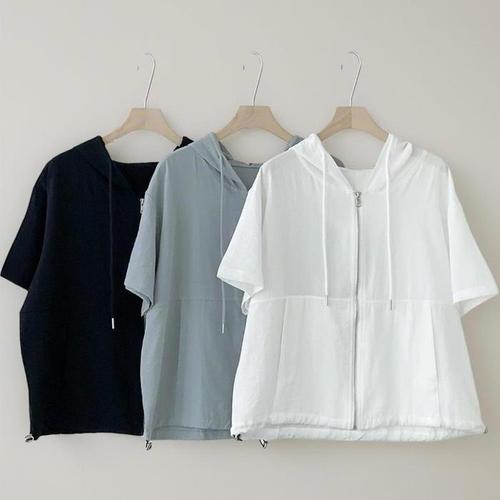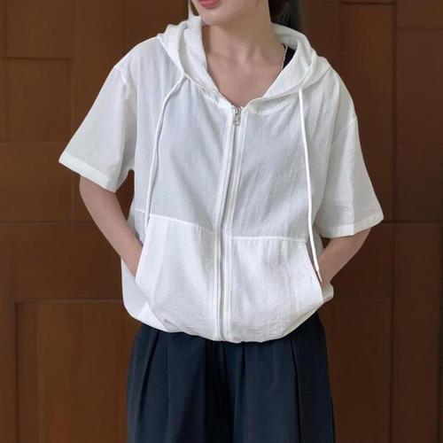 [신상오픈런]여성 여름 후드집업 반팔 캥거루 포켓 스트링 자켓 (38284359)