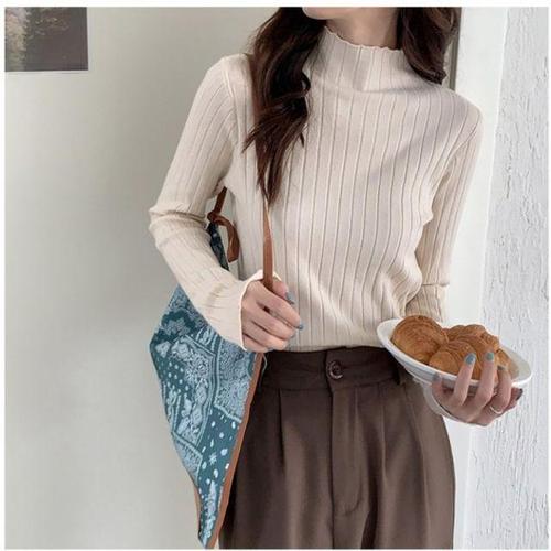 제이유미 여성용 골지 반폴라 부드러운 베이직 니트 HY210