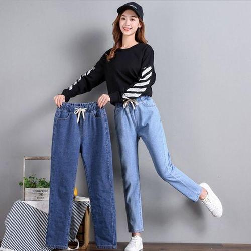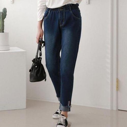 [에이치플러스몰]하이 여자 배기 청바지 스판 데님진 웨스트 밴딩 여성